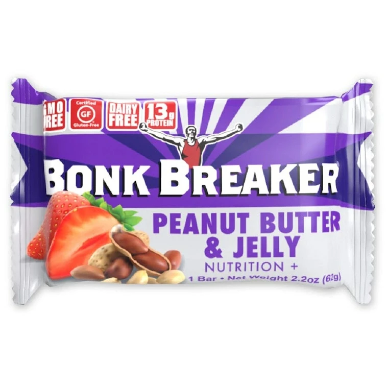 These Bonk Breaker high protein bar peanut butter & jelly flavor comes in pack of 12 counts. Also available in variety flavors such as almond cherry chunk, and cookie & cream.
