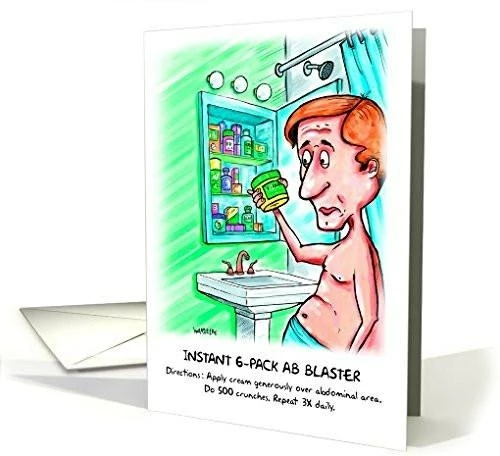 Outside Reads: INSTANT 6-PACK AB BLASTER. Apply cream generously over abdominal area. Do 500 crunches. Repeat 3X daily.