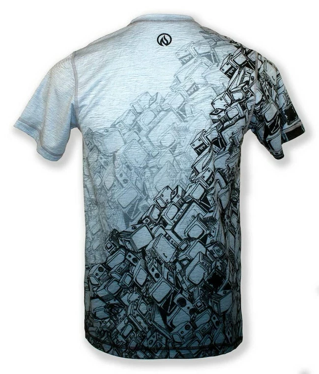 This new design by 17-year-old budding artist Kai Tsuyuki features old broken computers, the likes of which never existed in his life time. How did he draw them? Don’t know, he is 17 and doesn’t explain anything. Regardless, this hypnotic design will draw you in with the line work and mesmerizing soft blue light… kind of like a computer! This light-weight, tech shirt is designed for speed, but also works well as a cool, kick-back top that won’t show sweat! INKnBURN apparel doesn’t fade, so this tech will look great years from now! Vibrant art you can’t feel, on our super-light, moisture-wicking Dry I.C.E. Fabric. 100-Mile tested by ultra runners for comfort at extreme distance and a unique, head-turning design.