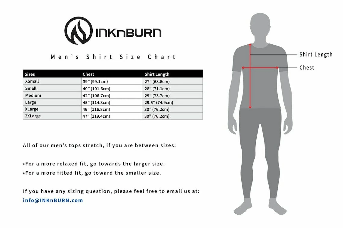 This INKnBURN light-weight, tech shirt is designed for speed, but also works well as a cool, kick-back top that won’t show sweat! INKnBURN apparel doesn’t fade, so this tech will look great years from now! Vibrant art you can’t feel, on INKnBURN’s super-light, moisture-wicking Dry I.C.E. Fabric. 100-Mile tested by ultra runners for comfort at extreme distance and a unique, head-turning design.