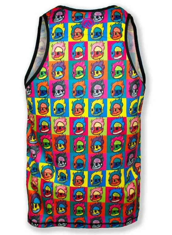 Funky and fun, the INKnBURN Run or Die Toon design features their fiery little dude with Run or Die on the brain! This light-weight, race-cut singlet is designed for speed, but also works well as a cool, kick-back summer top that won’t show sweat! Vibrant art you can’t feel, on our super-light, moisture-wicking Dry I.C.E. Fabric. 100-Mile tested by ultra runners for comfort at extreme distance and a unique, head-turning design.