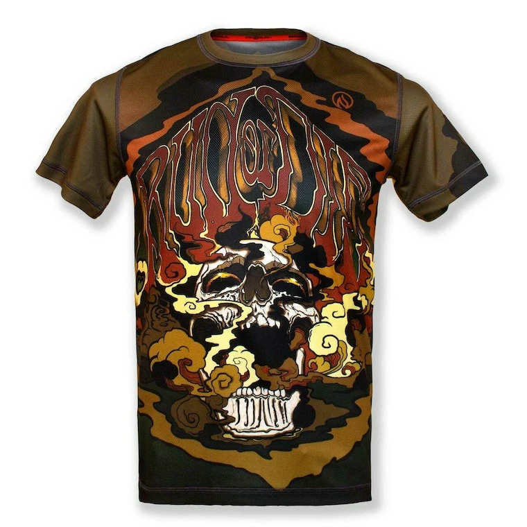 You gave it your all, finished and there is nothing left but a pile of bones, wisps of smoke and a sparkle in your eye… as you think, “What race can I sign up for next?” If this is you, Run or Die™ is your motto and this is your shirt! This light-weight, tech shirt is designed for speed, but also works well as a cool, kick-back top that won’t show sweat! INKnBURN apparel doesn’t fade, so this tech will look great years from now! Vibrant art you can’t feel, on our super-light, moisture-wicking Dry I.C.E. Fabric. 100-Mile tested by ultra runners for comfort at extreme distance and a unique, head-turning design.