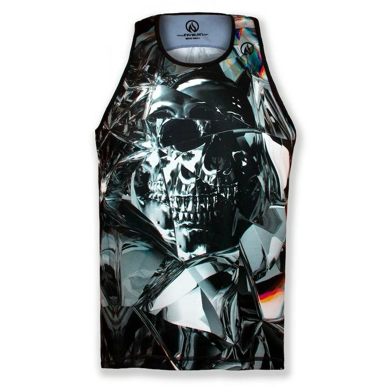 The INKnBURN Run or Diemond Singlet features the toughest substance on earth. Reflected in the multiple facets of this invincible stone is a skull, the symbol for triumph over death. For many exercise is exactly that. And, if that is you, this is your tank. This light-weight, race-cut singlet is designed for speed, but also works well as a cool, kick-back summer top that won’t show sweat! Vibrant art you can’t feel, on our super-light, moisture-wicking Dry I.C.E. Fabric. 100-Mile tested by ultra runners for comfort at extreme distance and a unique, head-turning design.