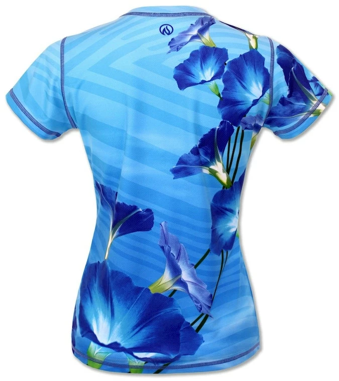 There is something about seeing a hummingbird that just lifts your spirits and makes you smile. They seem to appear out of nowhere and it feels just a little magical whenever you spy one. These tiny jewel-colored creatures symbolize courage, determination, adaptability and simply joy. Surrounded by morning glories reaching for the sun, this is a wonderful shirt to bring a little magic to your next workout or early morning run.
