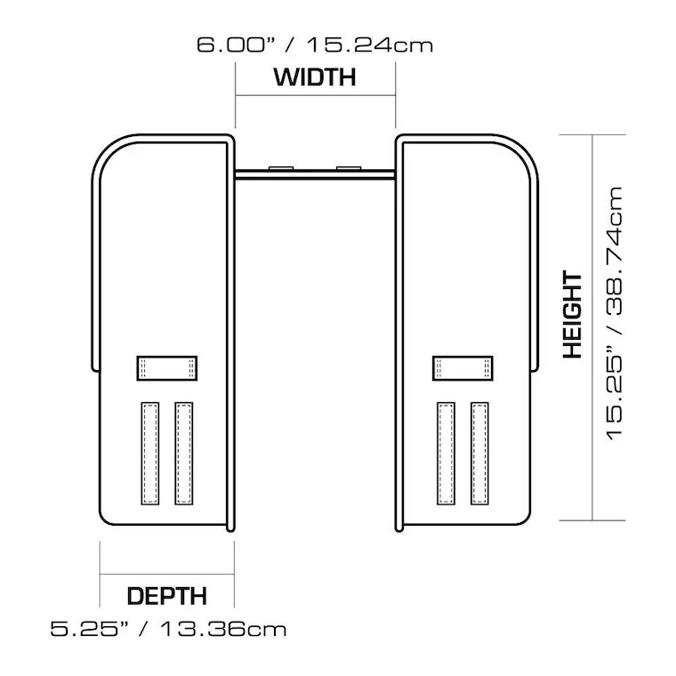 Dimensions: 15″ (Top Width) x 15.25″ (Height) x 12.5″ (Bottom Width) — 6″ Wide Connecting Center Attachment Panel