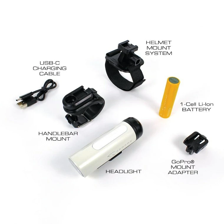 The Serfas© True 750 Road features 750 lumens of crystal clear bright night time illumination to make out every potential hazard and turn of the road and 280 lumens in Flash mode to make sure all eyes are on you. Even more, a wrap-around amber LED illuminated side marker projects bright ambient light for added side visibility to traffic and pedestrians. A smart extra large power button with LED backlit battery level indicator ensures surefire operation and convenient battery monitoring so there are no unwelcome surprises out on the road. Go-Pro® Bracket, Helmet Bracket and Bar Bracket Included.