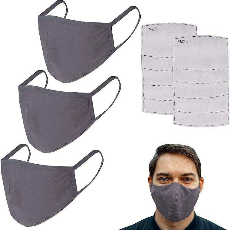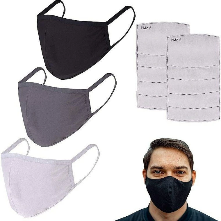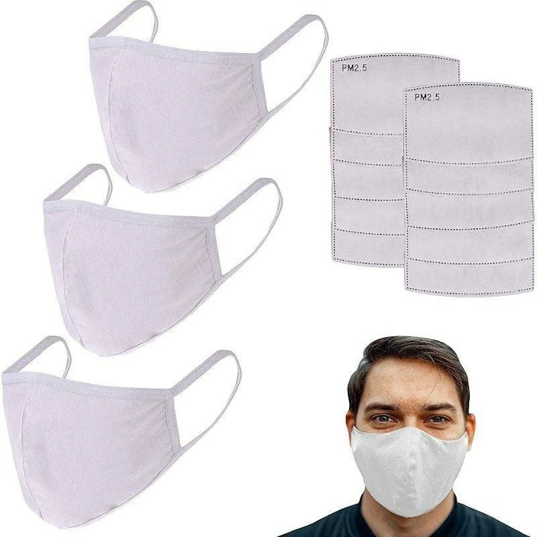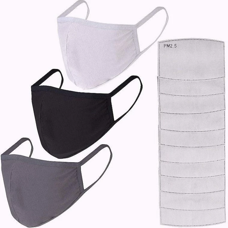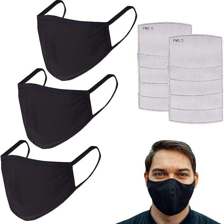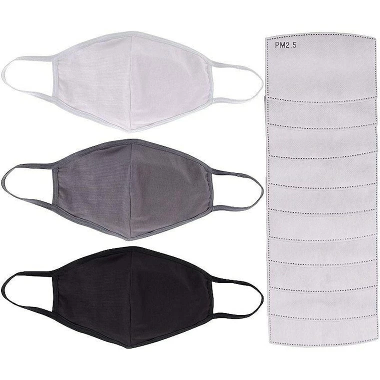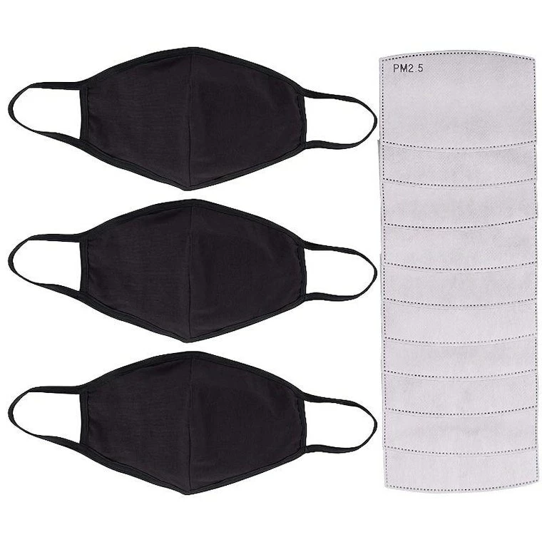 - Packaging Includes: This is a set of 3 Reusable Face Masks with 10 Pieces of PM 2.5 activated carbon filters. The Cotton Masks come with a pocket at the backside to slide in the filter.