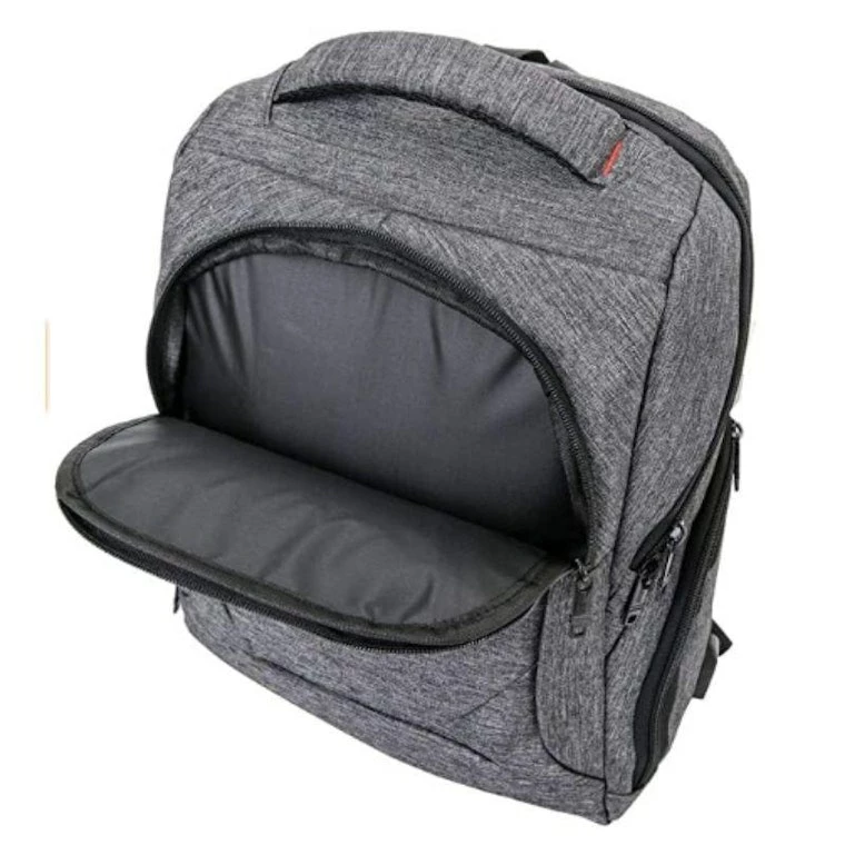 The integrated USB port on the side to charge on the go ( power bank not included) Large Multi-compartments design Fully padded computer sleeve fits up to 15.6” inches laptop Small side pockets on the sides Premium multiple pocket organizer Padded shoulder straps Additional hook-on-straps Comfortable reinforced top handle Padded back panel with airflow ventilation technology for added support and comfort Add-a-Bag sleeve on the back to secure the backpack to any carry-on Front compartment with convenient access zipper